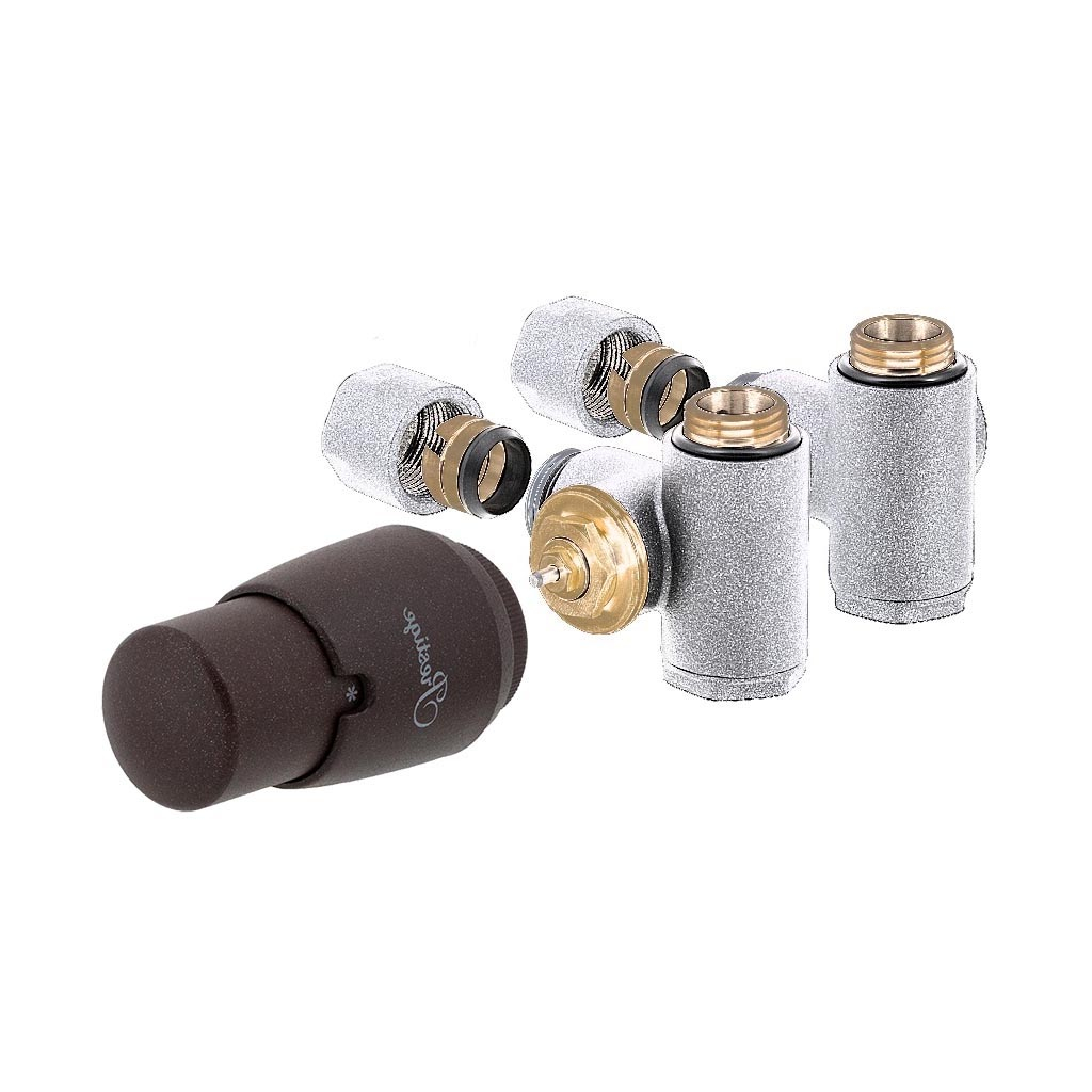 Termostatický ventil aj regulačné šróbenie sú na strane pripojenia do rozvodu zakončené svornou spojkou Cu 15×1 mm alebo Pex-Al-Pex 16×2 mm.