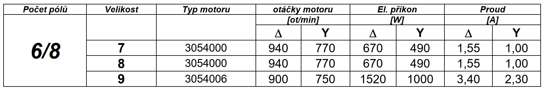 | Motor | 2-rychlostní asynchronní 3-fázový |