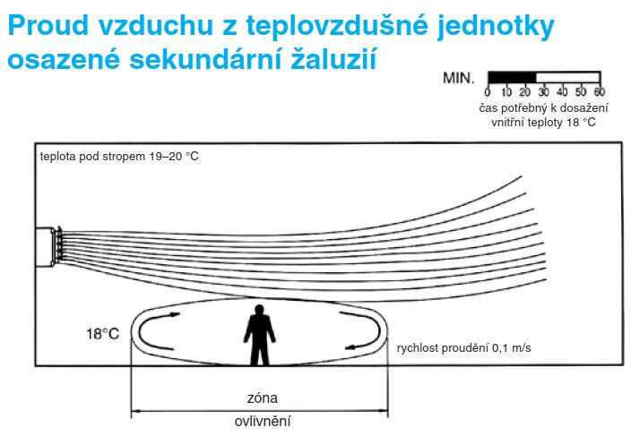 - Kratší dosah výstupního proudu vzduchu z teplovzdušné jednotky