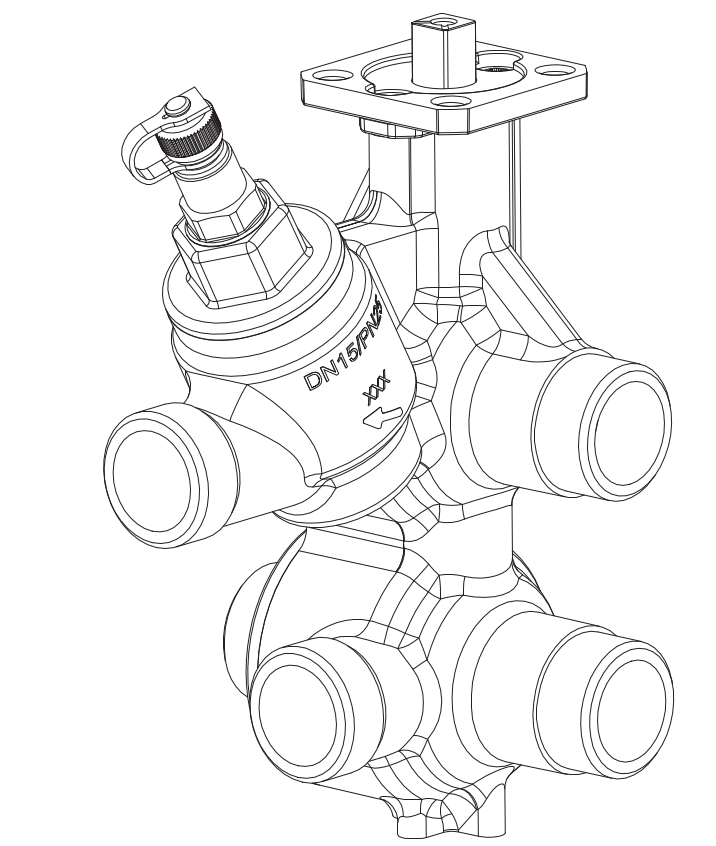 Tlakově nezávislé 6-cestné kulové kohouty Combiflow slouží pro připojení spotřebiče nebo skupiny spotřebičů s jedním výměníkem (2-trubkové spotřebiče) na 4-trubkový rozvod.